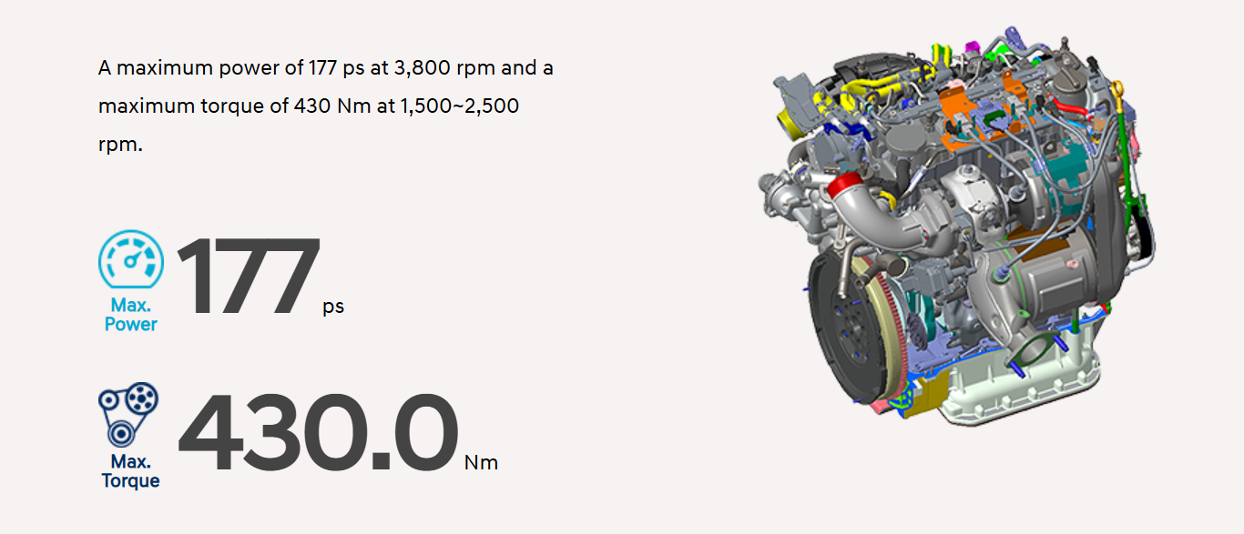 The recently launched 2026 model maintains its stable configuration in core power. The entire series is still equipped with a 2.2L CRDi turbocharged diesel four-cylinder engine, delivering a maximum power of 177 horsepower and a peak torque of 430 Nm.