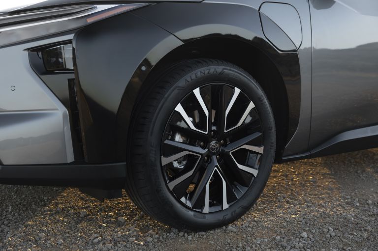 The facelifted bZ4X features a lower, more compact front end, paired with sharper bi-LED headlights and a redesigned bumper. This transforms its previously crossover-like "hammerhead" look into a more mature, SUV-like appearance. The side wheel arches have been redesigned, and select color options now offer body-colored finishes, further reducing the visual contrast of the previous black plastic cladding.