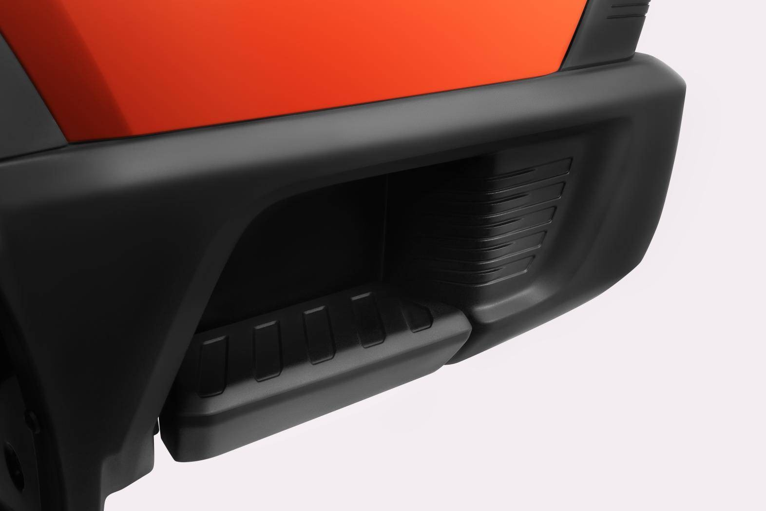 The Hilux Travo-e’s interior remains decidedly utilitarian, with a simpler feature set. The R08's design demonstrates its ability to retain the core functions of a pickup truck while also considering a modern driving experience.