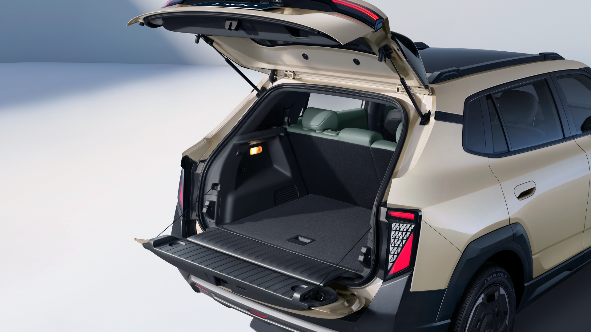 - Interior uses vegan leather, paired with 19-speaker WANOS sound system