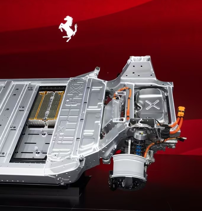 Ferrari unveils the chassis and core components of its first all-electric model, Elettrica