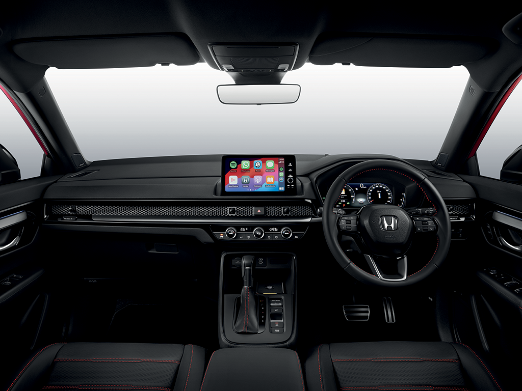 The interior of the CR-V is designed for comfort. It is appointed with two-tone leather seats accented by red stitching, dual-zone automatic air conditioning, and a touch-sensitive cabin light. The overall fit and finish offer a pleasant tactile experience.
