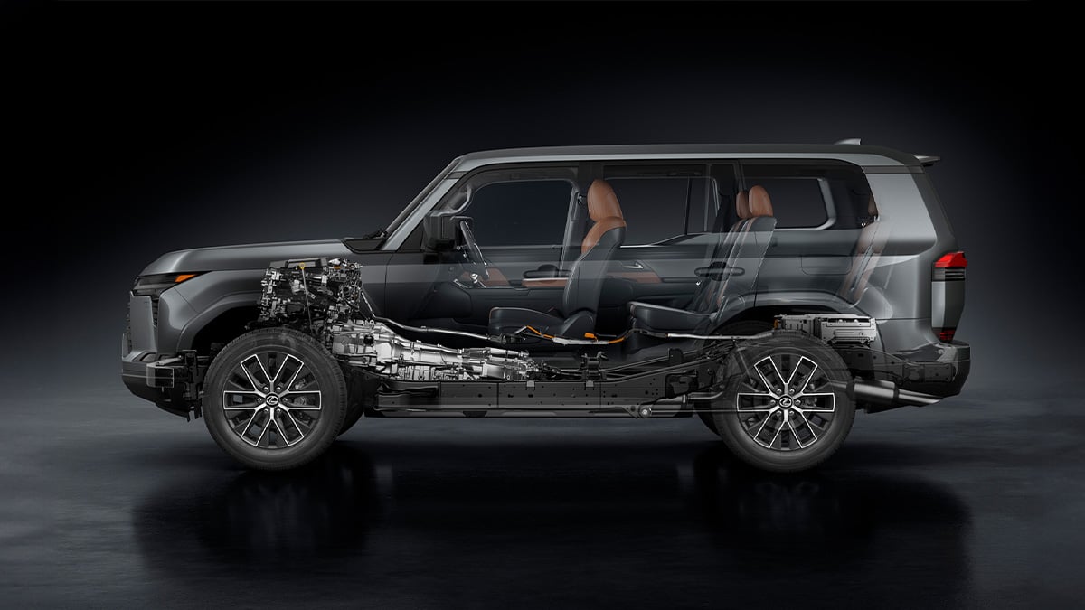 Built on the TNGA-F platform with a ladder frame chassis, the GX550 benefits from optimized suspension geometry and enhanced body rigidity. The combination of a front double-wishbone and a rear four-link solid axle, paired with full-travel coil springs and electric power steering, ensures robust off-road capability while also improving precision in on-road handling.