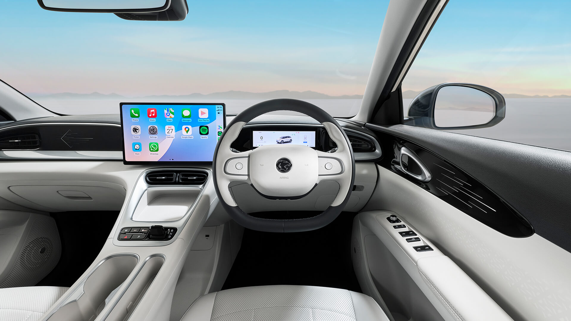 The interior of the e.MAS 5 follows a typical smartphone design approach. It is equipped with Atlas OS and a 14.6-inch FHD central touchscreen, where the operating logic mirrors that of a smartphone: smooth swiping, an intuitive interface, and functions that are clear at a glance.
