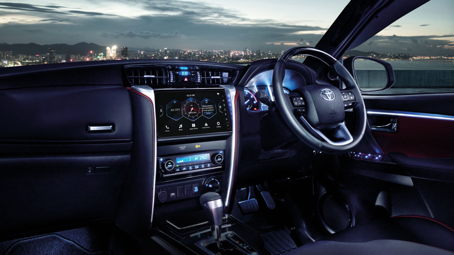 For the Fortuner, it features a 9-inch screen, manual air conditioning, ventilated disc brakes (better braking heat dissipation), and less flashy tech features.