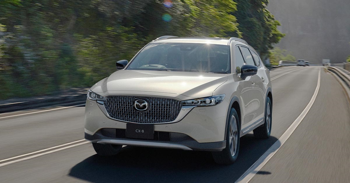 In contrast, the current CX-8, which is based on the CX-5 platform with an extended transverse front-wheel-drive architecture, appears quite conventional.