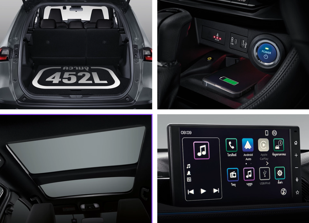 While the exterior boasts striking personalized styling, the interior of the Yaris Cross Nightshade keeps up perfectly, achieving a seamless style echo and uncompromised practicality in configurations. The cabin adopts an all-black theme color scheme, paired with ambient lighting to create a calm yet sophisticated driving atmosphere. In terms of materials, it features Dark cooling with genuine leather upholstery and black synthetic leather, decorated with gray threads, which enhances both the tactile comfort and the sporty texture of the interior. For in-car connectivity and convenience, the model comes as standard with a 9-inch central touchscreen across the entire lineup, supporting wireless Apple CarPlay and Android Auto integration for effortless smartphone connection. Additionally, the inclusion of a wireless smartphone charging pad effectively addresses the battery life anxiety of contemporary consumers regarding their mobile devices.