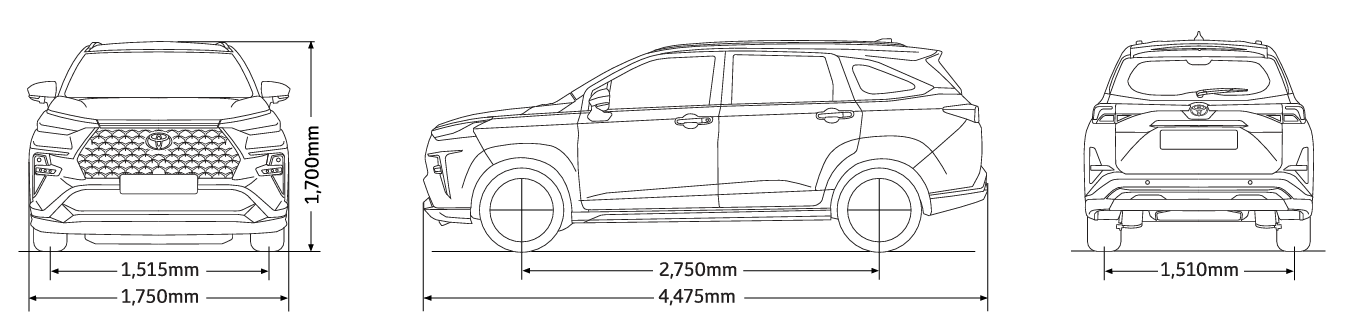 By analyzing the size data of Veloz, Zenix, and Sienna, it can be seen that there is an insurmountable gap in terms of space utilization and passenger comfort.