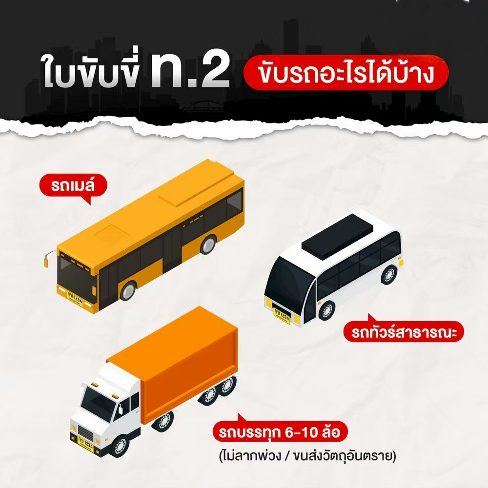ใบขับขี่ ท.2 เหมาะสำหรับผู้ที่ต้องการประกอบอาชีพ ขับรถสาธารณะหรือขนส่ง