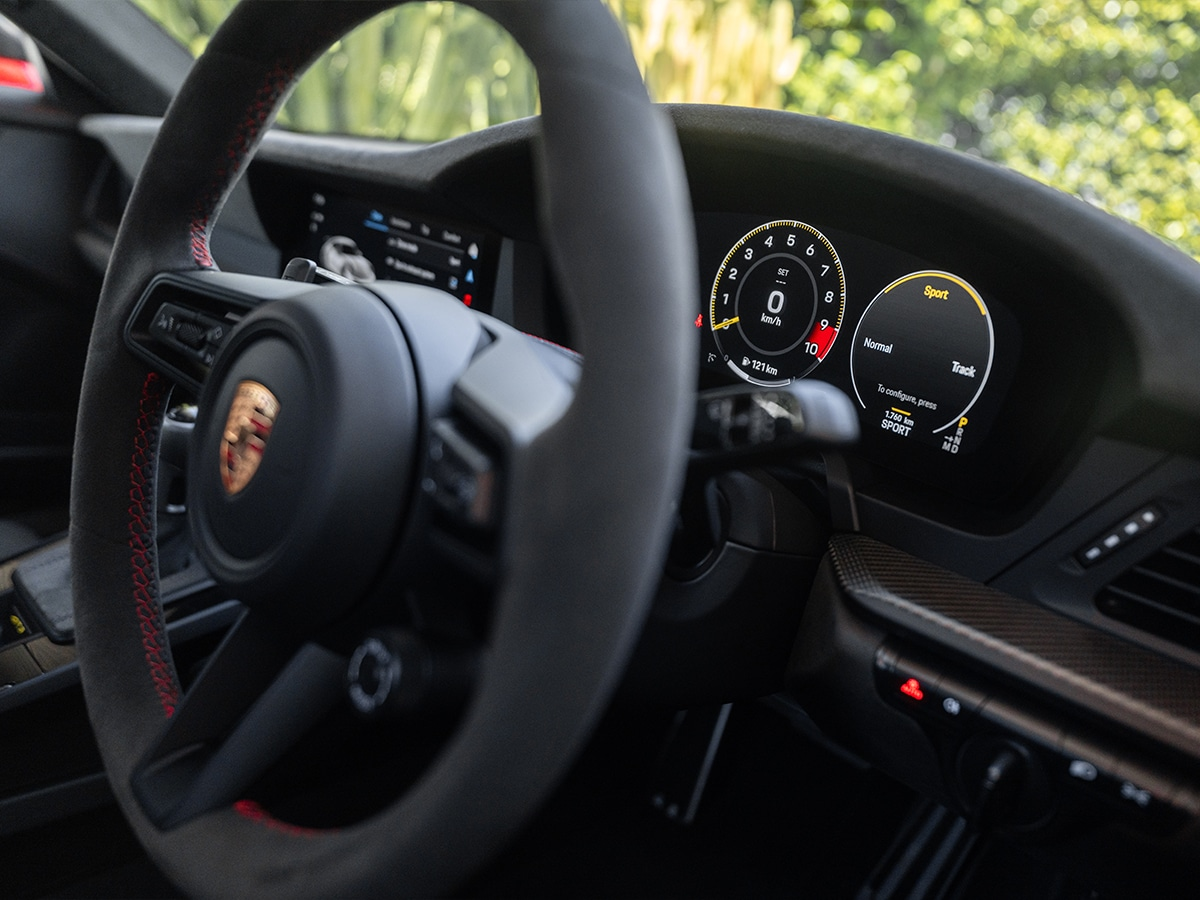 นอกเหนือจากราคาแล้ว สิ่งที่เป็นที่ถกเถียงมากที่สุดของ 911 (992.2) รุ่นปี 2026 คือการปรับปรุงภายใน ความเปลี่ยนแปลงที่ใหญ่ที่สุดคือลบหน้าปัดวัดรอบเครื่องยนต์แบบกลไกตรงกลางที่เป็นเอกลักษณ์ออก และเปลี่ยนเป็นหน้าจอโค้งขนาด 12.6 นิ้ว ทั้งแผงหน้าปัดถูกปรับให้เป็นดิจิทัลทั้งหมด ให้ความรู้สึกทางสายตาที่ทันสมัยยิ่งขึ้น ในขณะเดียวกันยังรองรับการใช้งาน Apple CarPlay ได้อย่างลึกซึ้ง และสามารถแสดงแผนที่บนแผงหน้าปัดโดยตรง เพิ่มความสะดวกสบายในการใช้งานประจำวัน