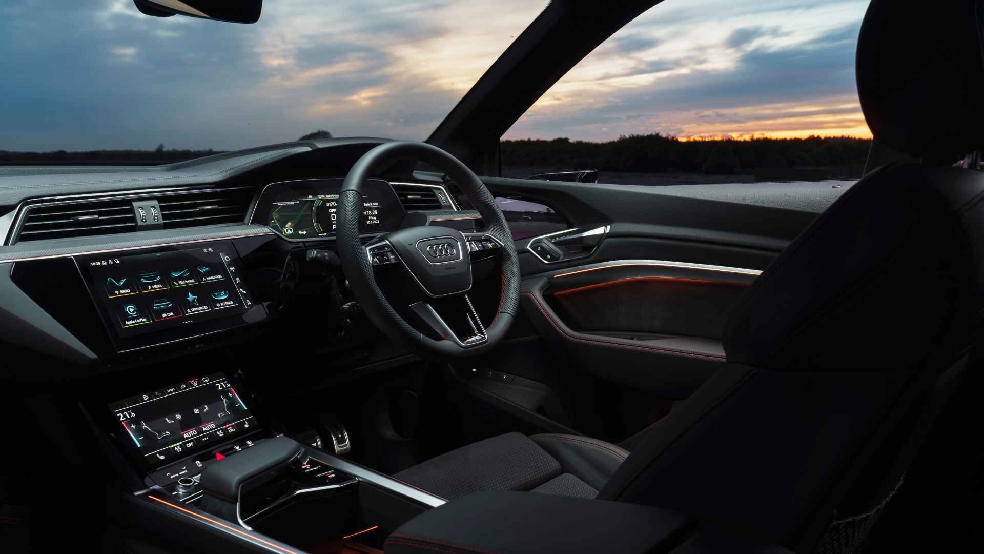 ภายในของ e-tron คือการผสมผสานระหว่างความหรูหราและนวัตกรรม Audi Virtual Cockpit ขนาด 12.3 นิ้วและจอสัมผัส MMI สองจอขนาดใหญ่ทำให้การควบคุมรถเป็นไปอย่างง่ายดาย วัสดุภายในทำจากหนังแท้และส่วนประกอบรีไซเคิลที่ให้ความรู้สึกพรีเมียมในทุกสัมผัส พื้นที่เก็บของที่กว้างขวางและที่นั่งปรับไฟฟ้าได้อย่างละเอียดทำให้การเดินทางสบายแม้ระยะไกล