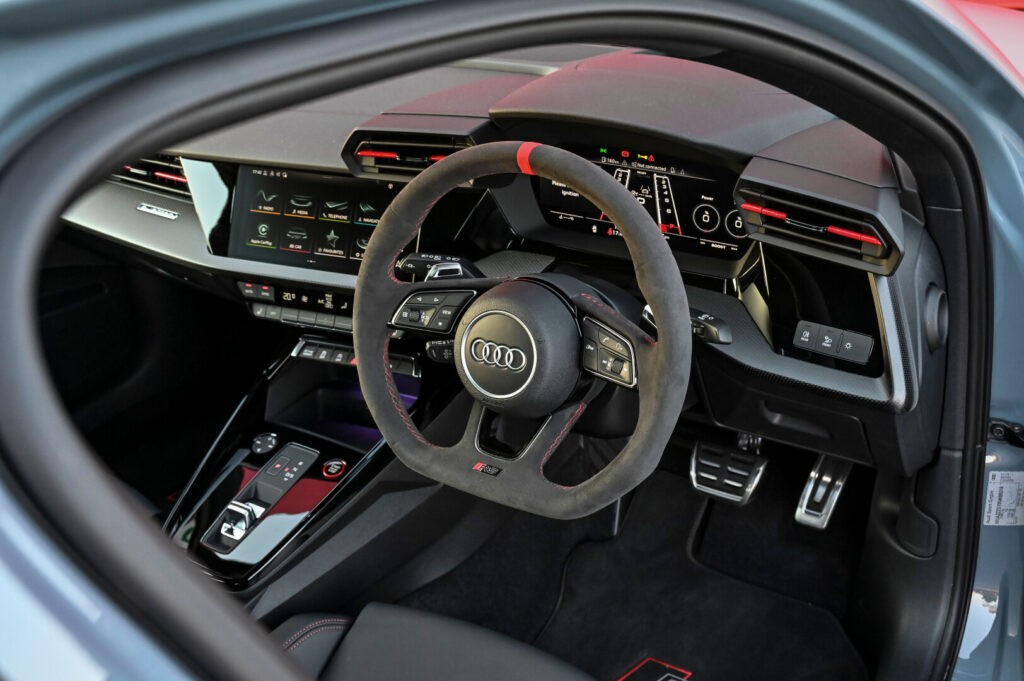 เมื่อเข้ามาในห้องโดยสาร คุณจะสัมผัสได้ถึงความพิเศษของ RS 3 ทันที ด้วยเบาะสปอร์ตหนัง Nappa พร้อมสัญลักษณ์ RS การ์ดันสีแดงเพื่อเน้นความเป็นสปอร์ต และแผงหน้าปัด Virtual Cockpit ที่ให้ข้อมูลการขับขี่ทั้งหมดแบบเรียลไทม์