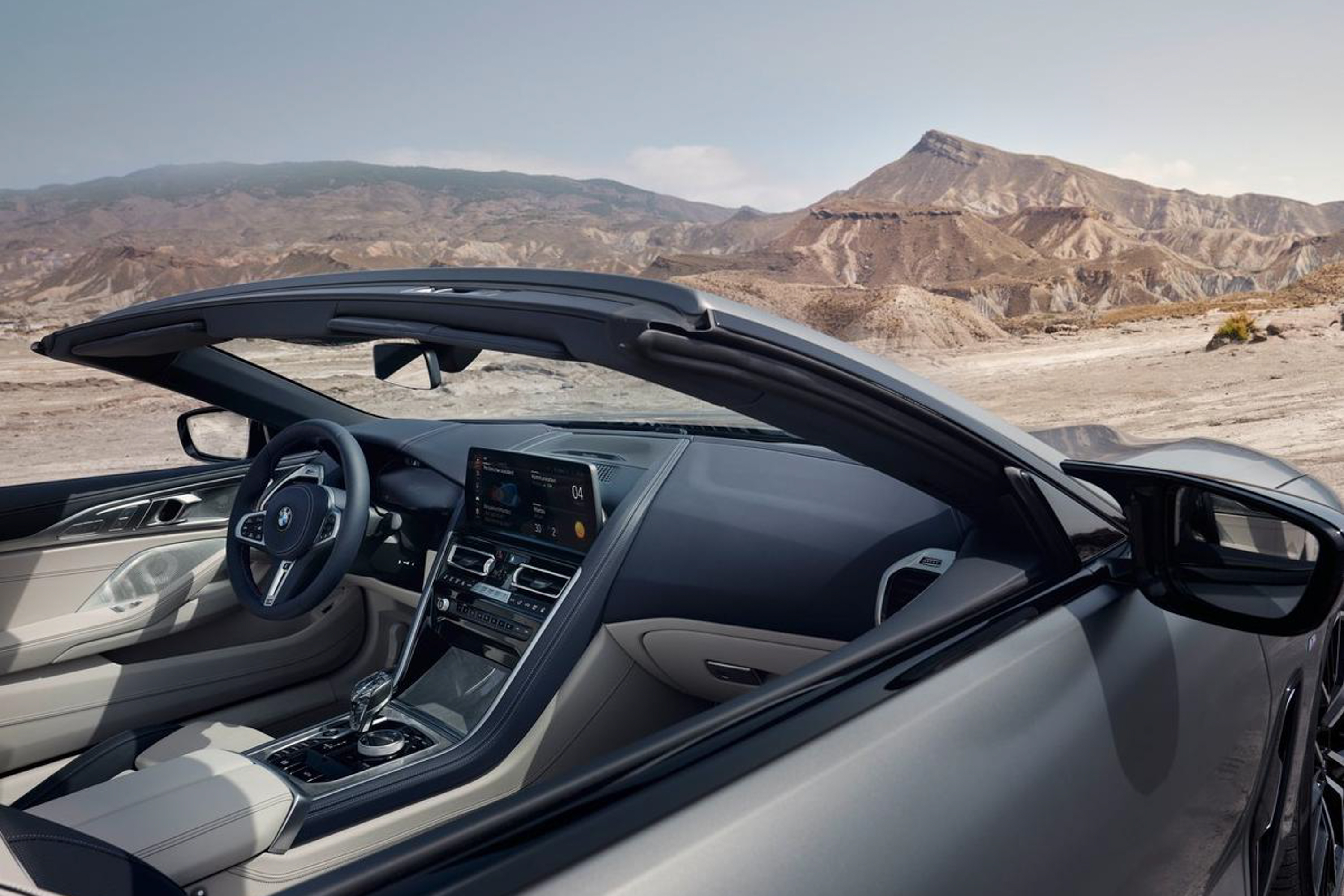 เมื่อเปิดประตูของ BMW 8 Series Convertible คุณจะพบกับสวรรค์ส่วนตัวที่ได้รับการออกแบบอย่างพิถีพิถัน วัสดุชั้นเลิศ เช่น หนังอเมริกันคุณภาพสูง และไม้โอ๊คธรรมชาติ หรือคาร์บอนไฟเบอร์ ถูกนำมาใช้อย่างลงตัว เทคโนโลยีฉนวนกันเสียงขั้นสูงช่วยขจัดเสียงรบกวนจากภายนอกได้อย่างมีประสิทธิภาพ พวงมาลัย M Sport ขนาดกะทัดรัดมาพร้อมแป้นเปลี่ยนเกียร์ และเบาะนั่งปรับไฟฟ้าที่ปรับได้หลายระดับ พร้อมฟังก์ชั่นนวดและทำความร้อน/ความเย็น คุณจึงสามารถหาตำแหน่งการขับขี่ที่เหมาะสมที่สุดได้เสมอ แผงหน้าปัดดิจิทัลแบบคริสตัลและหน้าจอสัมผัสกลางขนาด 10.25 นิ้ว ควบคุมโดยระบบ iDrive 7.0 ที่ล้ำสมัย มอบประสบการณ์ที่ราบรื่นและใช้งานง่าย สำหรับสภาพอากาศที่อบอุ่น ระบบควบคุมอุณหภูมิอัตโนมัติสี่โซนพร้อมฟังก์ชั่นกระจายกลิ่นหอมและระบบเสียงรอบทิศทางจากลำโพง Harman Kardon หรือ Bowers & Wilkins จะช่วยเพิ่มความสุขและความสดชื่นให้กับการเดินทางทุกครั้งของคุณ