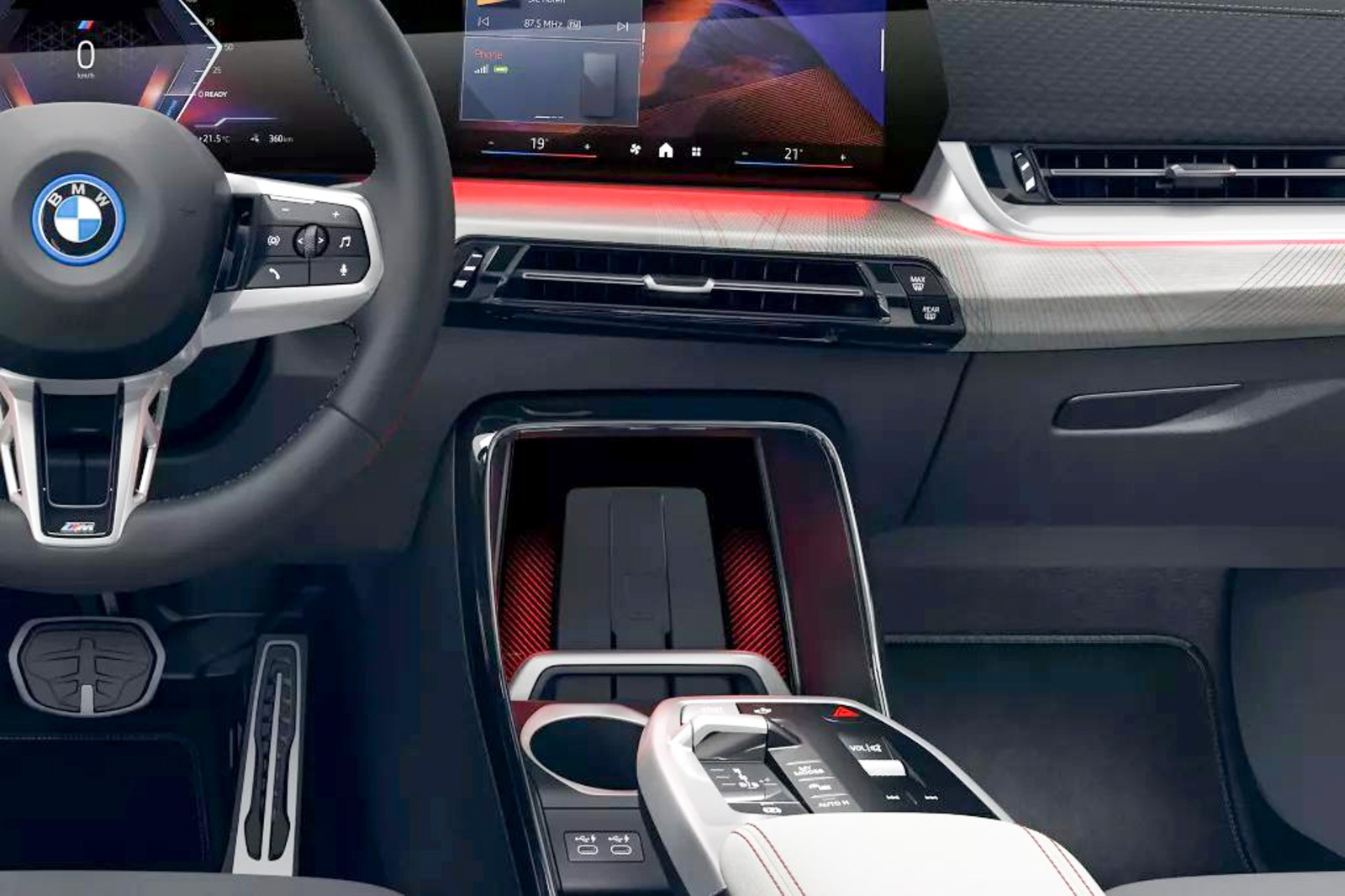 ภายในห้องโดยสารของ BMW iX2 ผสานความหรูหรา วัสดุคุณภาพสูง และเทคโนโลยีล้ำสมัยที่เน้นผู้ขับขี่เป็นศูนย์กลางตามแบบฉบับของ BMW แผงหน้าปัดโค้งมนขนาดใหญ่ประกอบด้วยจอแสดงข้อมูลผู้ขับขี่ขนาด 10.25 นิ้ว และระบบสื่อสารส่วนกลางขนาด 10.7 นิ้ว วัสดุส่วนใหญ่เป็นวัสดุคุณภาพสูง เช่น เบาะหนัง Veganus เป็นมาตรฐาน (มีตัวเลือกอัพเกรดเป็นหนัง Veganus เจาะรู) และตกแต่งด้วยอลูมิเนียมลายเพชรหรือไม้แอชเนื้อดี พร้อมตัวเลือกระบบเสียงแบบปรับแต่งได้เอง พื้นที่เก็บสัมภาระก็กว้างขวางเพียงพอสำหรับการใช้งานประจำวันและการเดินทางช่วงสุดสัปดาห์