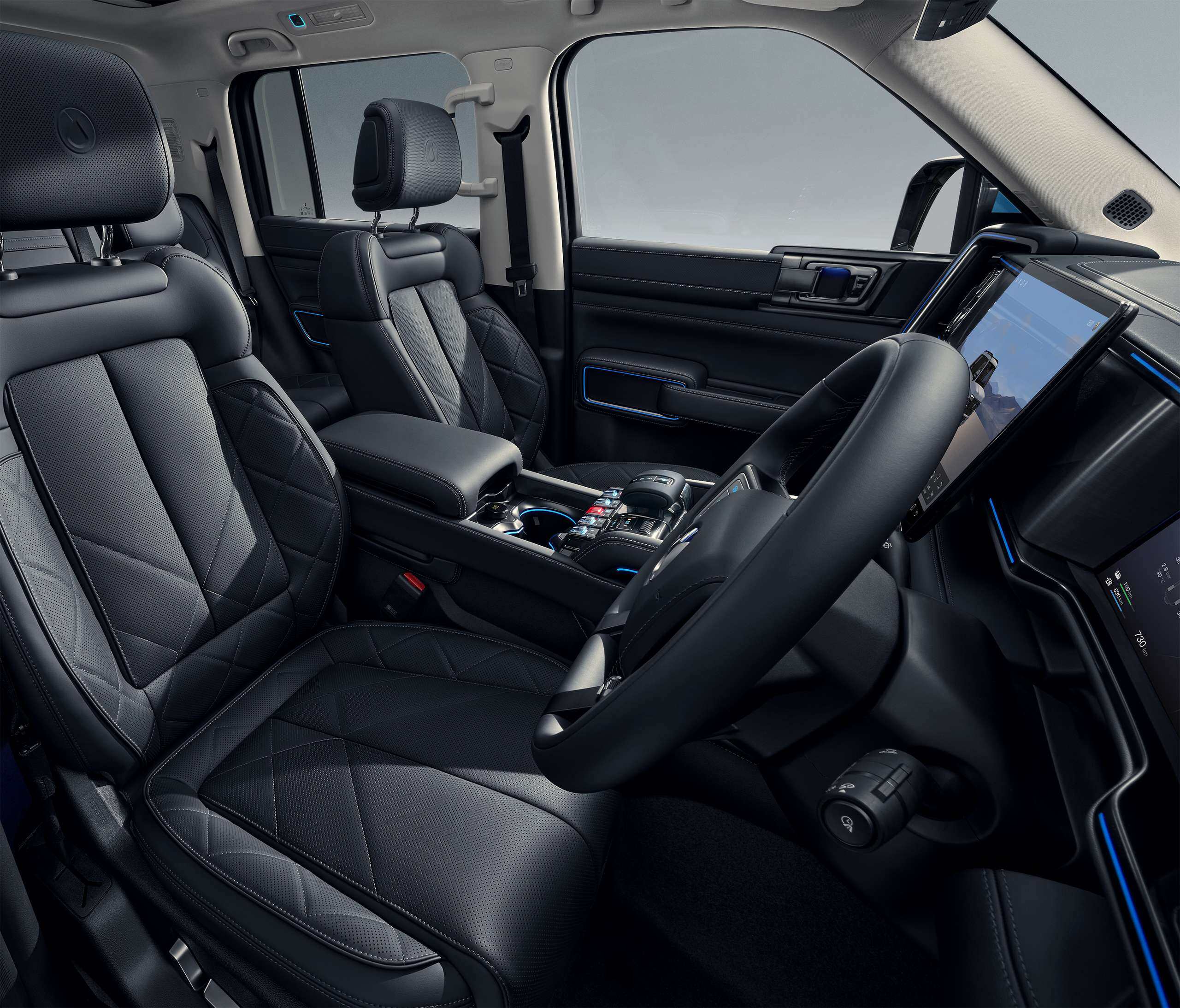 ภายในห้องโดยสารเลือกใช้หนังแท้ Nappa คุณภาพสูง มาพร้อมหน้าจอคอนโซลหมุนได้ขนาด 15.6 นิ้ว และเพิ่มระบบสั่งงานด้วยเสียงภาษาไทยและตู้เย็นแถวหลังเป็นพิเศษสำหรับตลาดในประเทศไทย