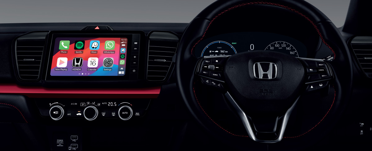 Honda City Hatchback ในบางรุ่น เช่น 1.0 Turbo RS และ 1.5 Turbo e:HEV RS มีหน้าจอ RS Sport Style ขนาด 4.2 นิ้ว พร้อมจอแสดงผลขับขี่ขนาด 7 นิ้ว โดยมีการออกแบบโดยรวมที่เน้นประโยชน์ใช้สอยและความสปอร์ต