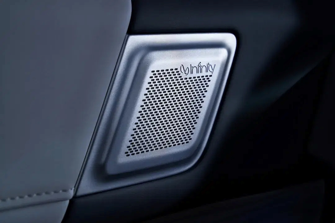 รุ่น 4WD ติดตั้งระบบเสียง Infinity ลำโพง 12 ตัว พร้อมกับซันรูฟแบบพาโนรามาและไฟบรรยากาศหลากสี เพื่อสร้างบรรยากาศที่มีความล้ำสมัยในการตกแต่งภายใน