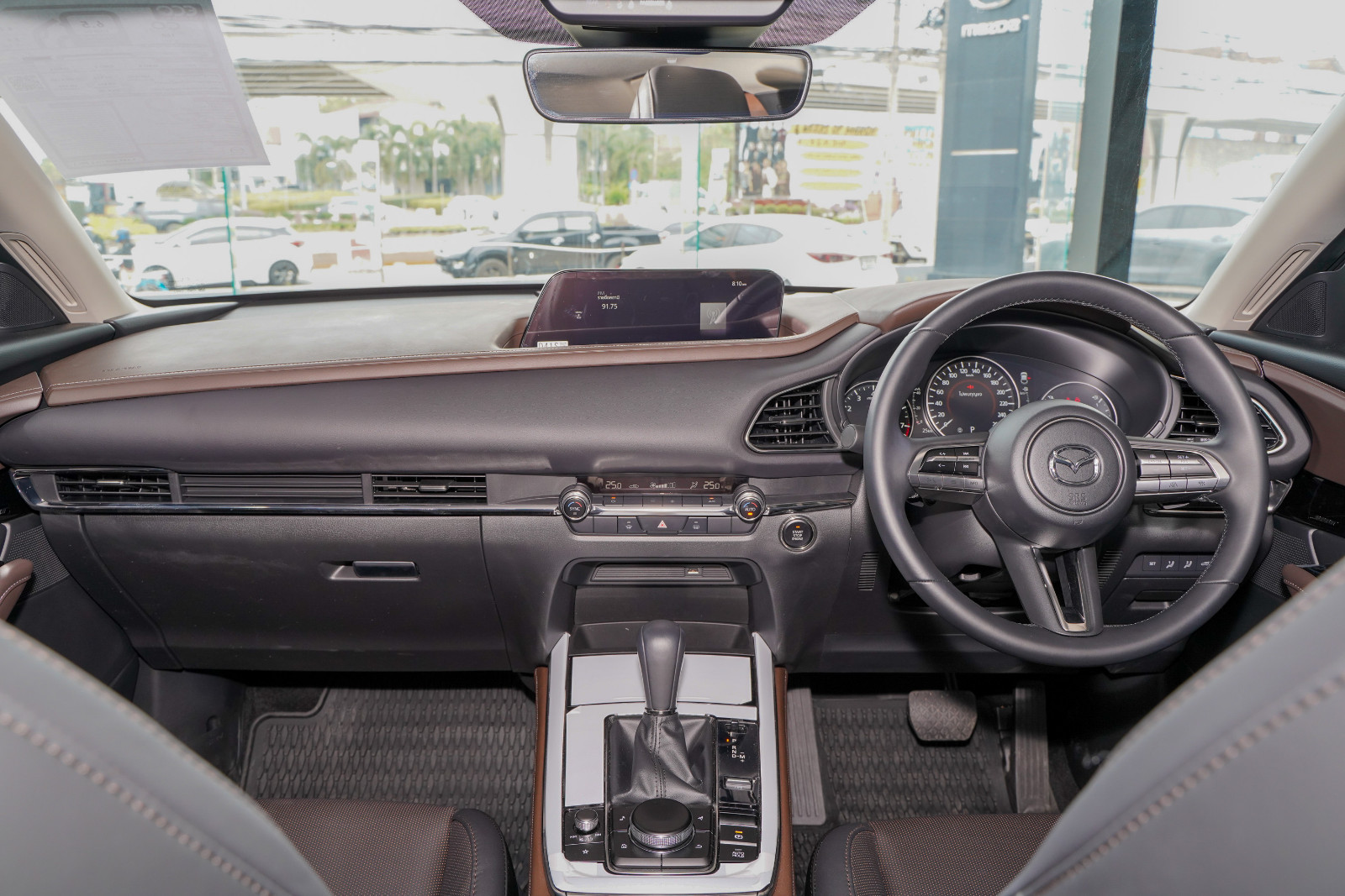 ภายในของ Mazda CX-30 ถูกออกแบบมาเพื่อมอบประสบการณ์ที่หรูหราและสะดวกสบาย ด้วยการใช้หนังสังเคราะห์หรือวัสดุอ่อนนุ่มในการตกแต่ง โต๊ะกลางรถมีความกว้างและใช้งานง่าย มีระบบ Mazda Connect 8.8 นิ้วที่รองรับ Apple CarPlay/Android Auto ทำให้การเดินทางในเมืองเป็นได้ง่าย หมอนพักได้รับการปรับแต่งให้แนบสนิท ช่วยลดความเมื่อยล้าในการขับขี่ที่ยาวนาน มีพื้นที่เก็บของที่เพียงพอ เช่น ในแบบฐานรถ ที่รองรับการบรรทุกของได้หลากหลาย ในบริบทของคนขับไทย การใช้วัสดุที่ระบายอากาศง่ายและทนต่อความร้อนสูง เป็นข้อดีที่ได้รับความนิยม