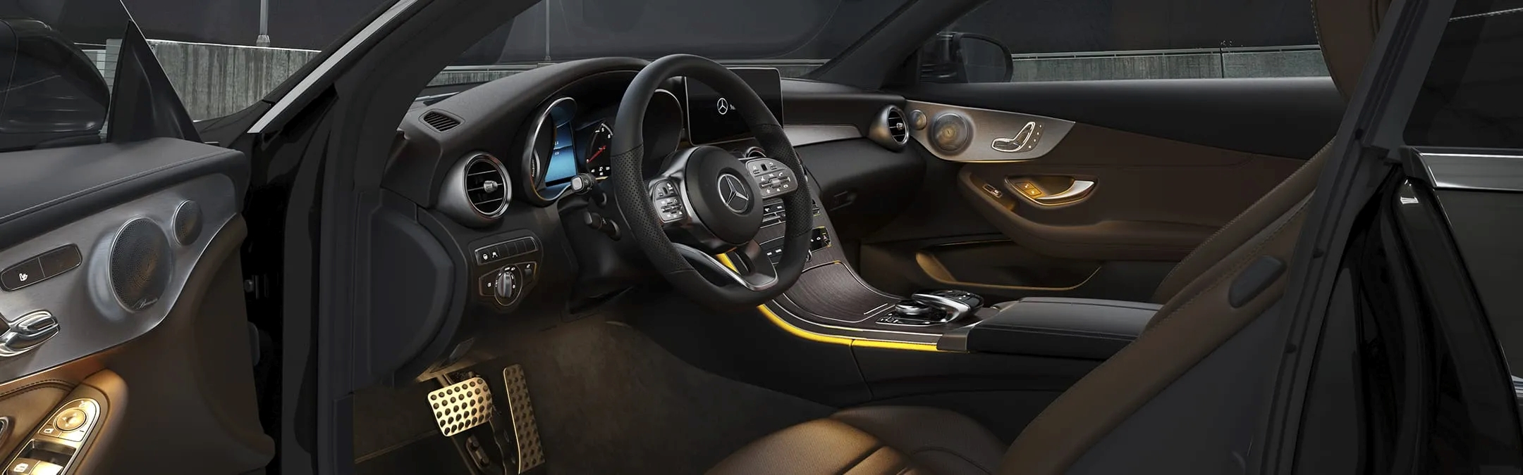 ภายในห้องโดยสารของ C-Class Coupe ออกแบบมาเพื่อความหรูหราและความสะดวกสบายสูงสุด หน้าจอแสดงผลดิจิทัลขนาดใหญ่ที่รวมการทำงานของระบบมัลติมีเดียและระบบต่าง ๆ เข้าด้วยกัน เบาะนั่งหนังคุณภาพสูงที่ปรับไฟฟ้าได้ พวงมาลัยหนัง sporty พร้อมปุ่มควบคุมหลายฟังก์ชัน และระบบเสียง Burmester ช่วยสร้างบรรยากาศการขับขี่ที่สมบูรณ์แบบ
