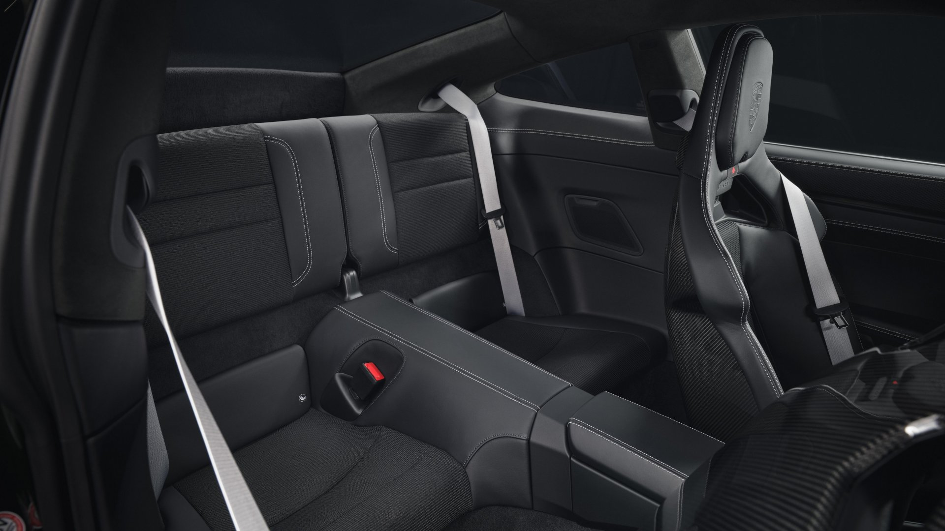 Porsche 911 GT3 RS ภายในห้องโดยสารใช้วัสดุ Race-Tex จำนวนมากพร้อมเบาะนั่งทรงถังจากคาร์บอนไฟเบอร์ และสามารถเลือกติดตั้งโครงเหล็กกันกระแทกได้