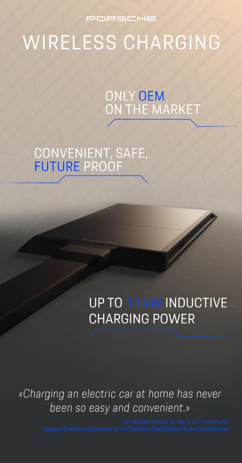 ดร. ไมเคิล สไตเนอร์ หัวหน้าฝ่ายพัฒนาของ Porsche กล่าวว่า ประสบการณ์การใช้งานของผู้ใช้ ความสะดวกสบายในชีวิตประจำวัน และโครงสร้างพื้นฐานการชาร์จยังคงเป็นปัจจัยสำคัญที่ส่งผลต่อการยอมรับยานยนต์ไฟฟ้า และเทคโนโลยีการชาร์จไร้สายจะทำให้การชาร์จที่บ้านสะดวกสบายอย่างที่ไม่เคยมีมาก่อน
