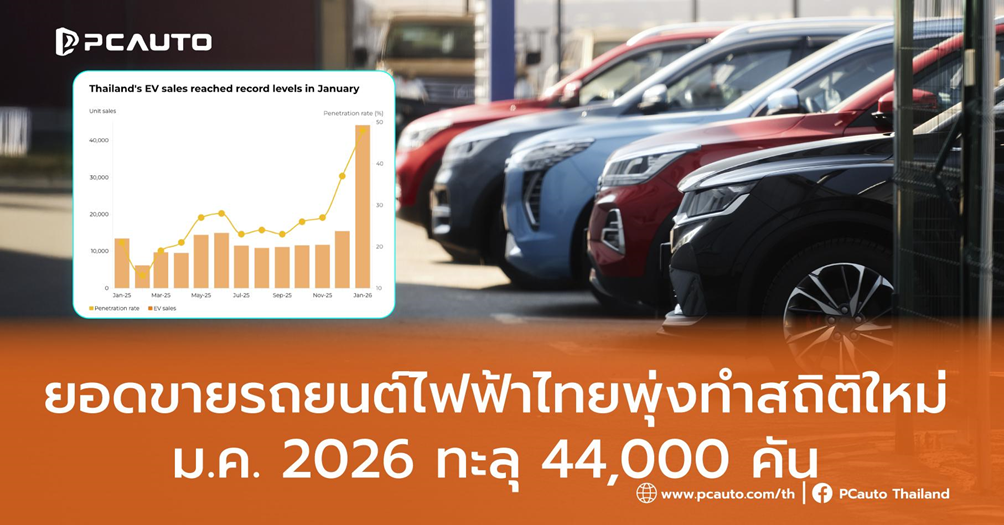 ยอดขายรถยนต์ไฟฟ้าในไทยพุ่งทำสถิติใหม่ ม.ค. 2026 ทะลุ 44,000 คัน