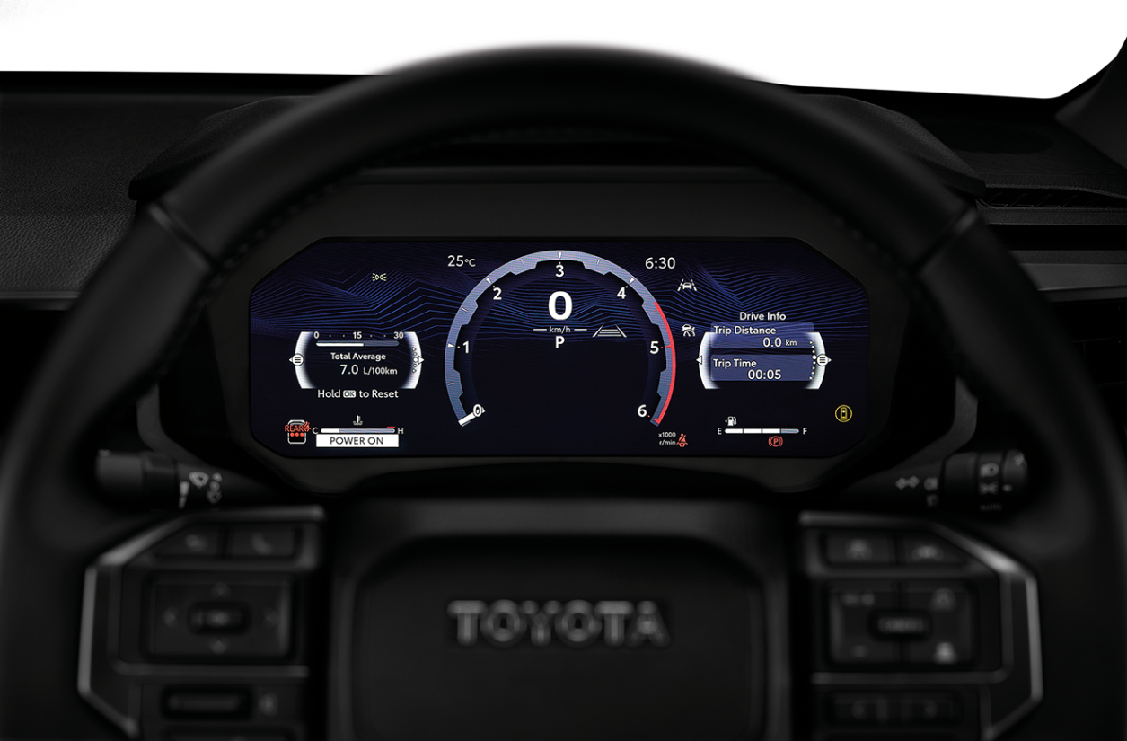 การตกแต่งภายในของ Hilux รุ่นใหม่มีการเปลี่ยนแปลงที่ใหญ่มาก เมื่อคุณนั่งเข้าไปยังรู้สึกเหมือนอยู่ใน Land Cruiser ตรงกลางของแผงหน้าปัดที่ยืดออกในแนวนอนมีหน้าจอสัมผัสขนาดใหญ่ 12.3 นิ้วฝังอยู่และด้านหน้ายังมีแผงหน้าปัดดิจิตอลขนาดใหญ่ที่มีขนาดเท่ากันซึ่งแสดงผลค่อนข้างชัดเจน