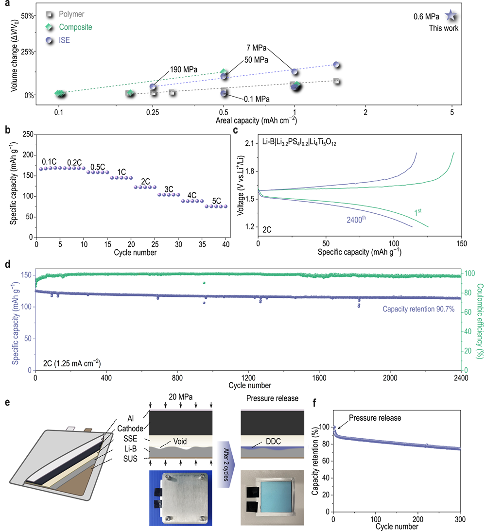 ในช่วงเวลานาน แบตเตอรี่ลิเธียมไอออนสถานะของแข็งทั้งหมด (All-solid-state lithium batteries) ไม่สามารถพ้นจากห้องปฏิบัติการได้ เนื่องจากการเปลี่ยนแปลงปริมาตรของขั้วลิเธียมโลหะ (lithium metal anode) และปัญหารูพรุนที่บริเวณขอบเขตการเชื่อมต่อ