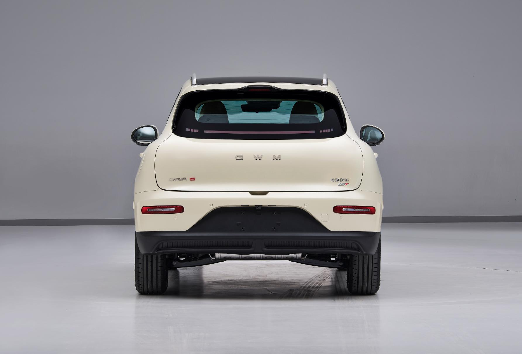 ด้านหลังติดตั้งไฟท้ายแบบเส้นที่พาดยาวและสปอยเลอร์ขนาดเล็ก โดยมีข้อความ “ORA 5 1.5T” ที่บริเวณท้ายเป็นตัวบ่งบอกรูปแบบพลังงาน