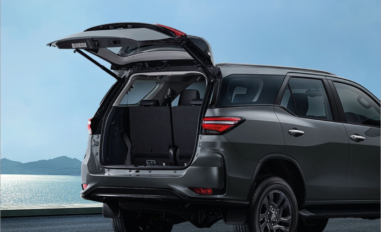 ประตูท้ายไฟฟ้าพร้อมระบบป้องกันการหนีบ ซึ่งความสะดวกนี้ต้องสั่งเพิ่มใน Fortuner 2.4 Leader S รุ่นปี 2024
