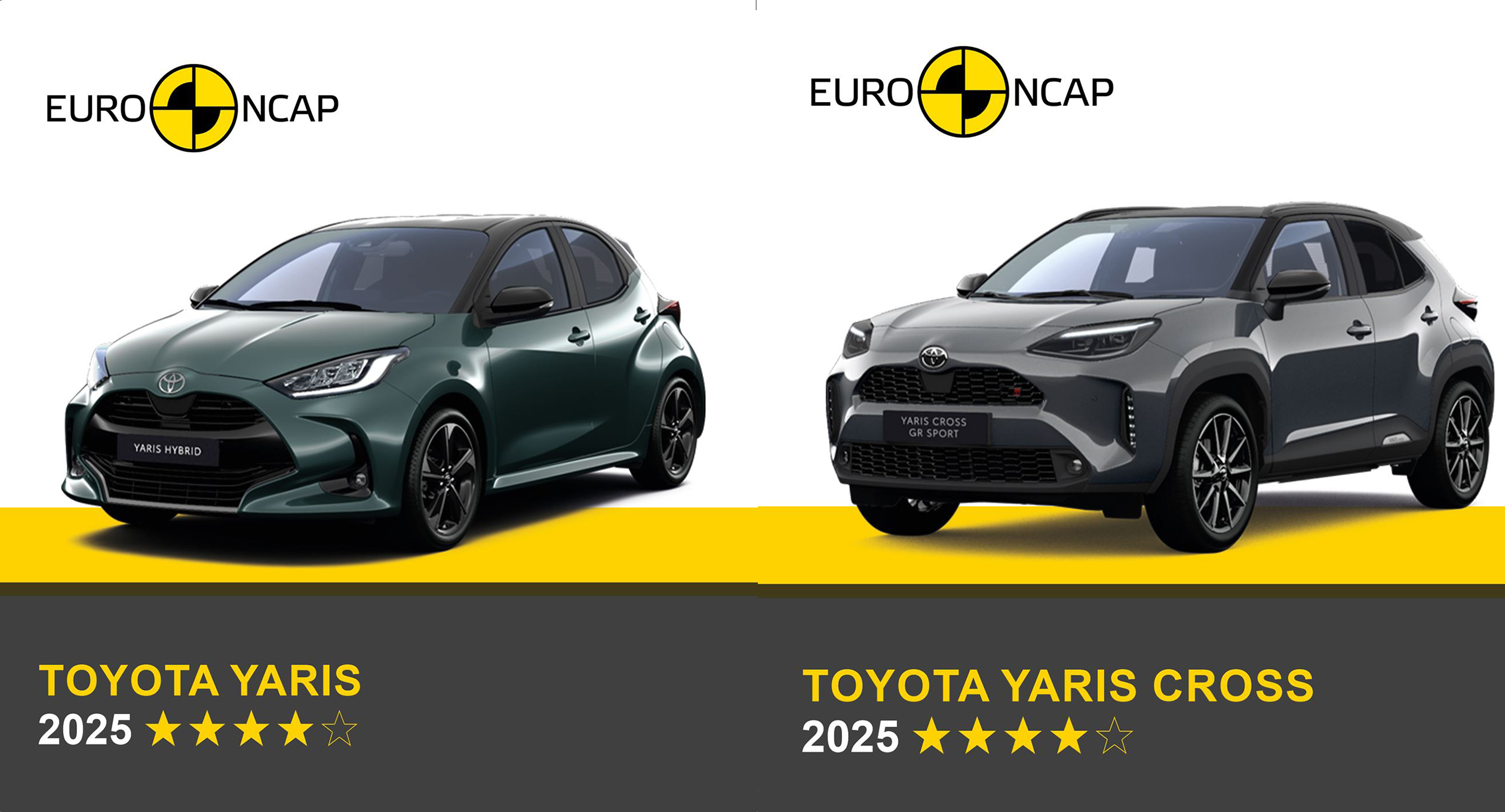 อย่างไรก็ตาม เมื่อมาตรฐานการทดสอบใหม่และเข้มงวดกว่าของปี 2025 ได้มีการบังคับใช้เต็มรูปแบบ รถยนต์ Toyota Yaris และ Yaris Cross ที่เคยได้รับการยกย่องในเรื่องความปลอดภัยกลับถูกลดระดับลงเหลือเพียงสี่ดาวในผลการทดสอบการชนใหม่ของ Euro NCAP
