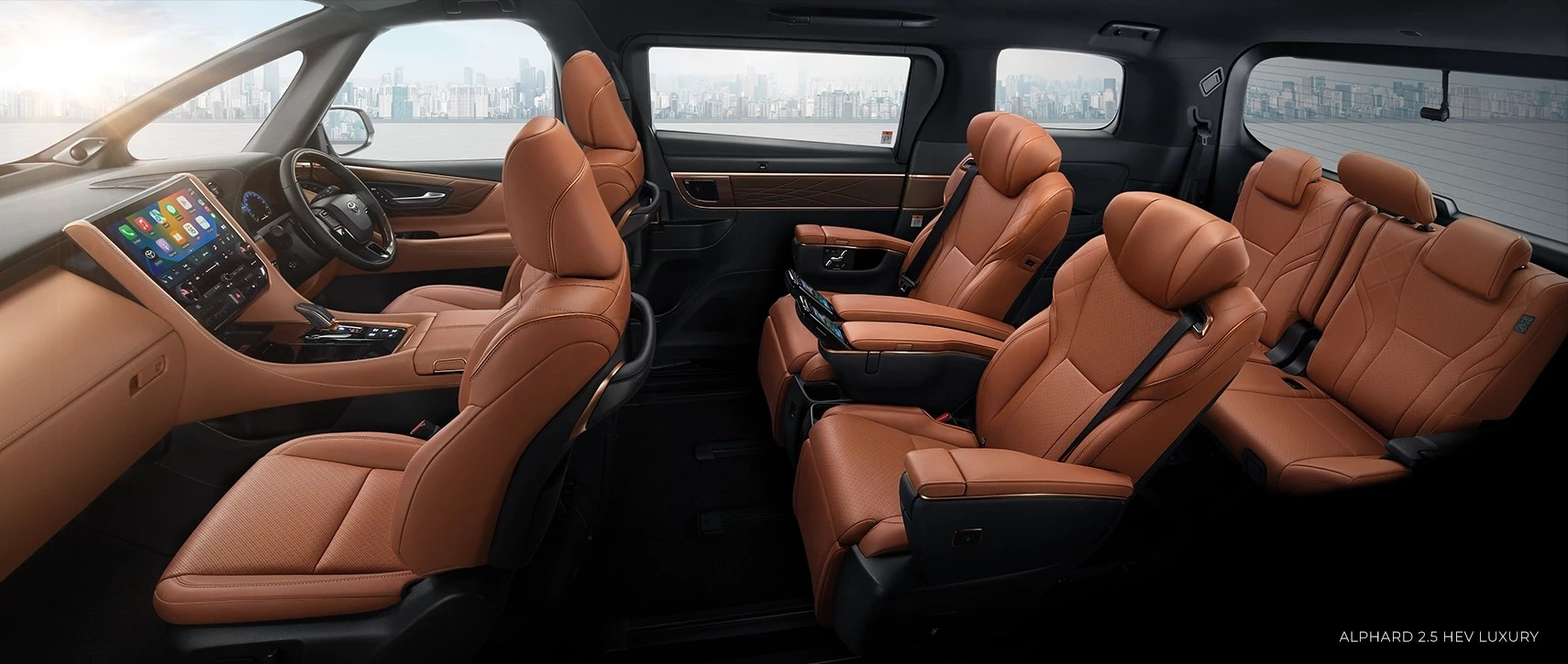 Alphard ให้ความสำคัญกับความสะดวกสบายของผู้โดยสารตอนหลังเป็นพิเศษ โดยมาพร้อมกับเบาะไฟฟ้า ระบบความบันเทิงสำหรับผู้โดยสารด้านหลัง และการควบคุมระบบปรับอากาศแบบแยกส่วน เหมาะสำหรับการเดินทางระยะไกล