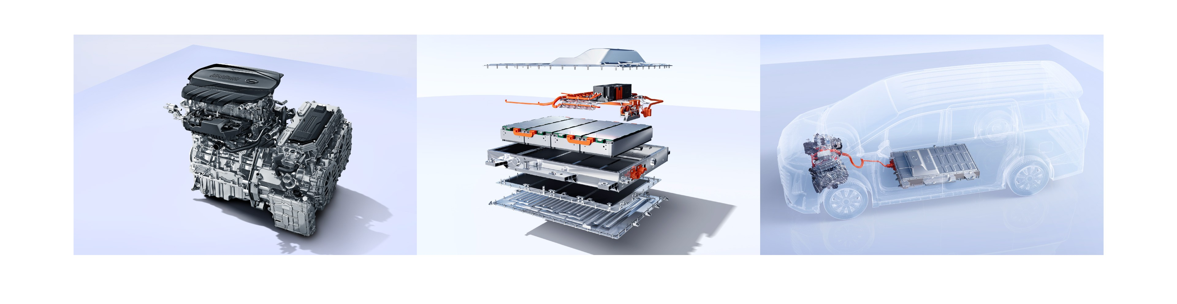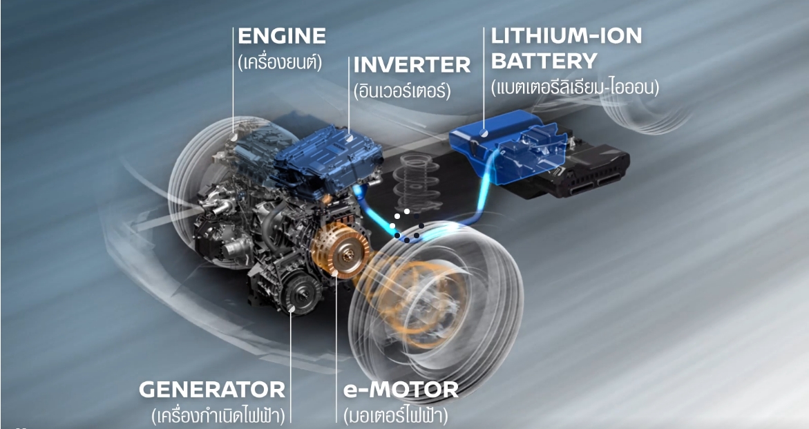ระบบนี้ประกอบด้วยเครื่องยนต์เบนซินสามสูบขนาด 1.2 ลิตร และมอเตอร์ไฟฟ้า โดยเครื่องยนต์ไม่ได้ขับเคลื่อนล้อโดยตรง แต่ทำหน้าที่เป็นเครื่องกำเนิดไฟฟ้าเพื่อจ่ายพลังงานให้กับมอเตอร์ไฟฟ้าและแบตเตอรี่ลิเธียมไอออนความจุสูง มอเตอร์ไฟฟ้าจึงเป็นตัวขับเคลื่อนยานพาหนะ ระบบการออกแบบนี้ผสานคุณสมบัติการขับขี่ที่ราบรื่นและเงียบของรถไฟฟ้าเข้ากับความสามารถในการเดินทางระยะไกลของรถน้ำมัน