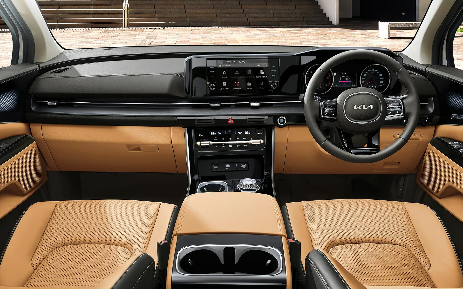 การตกแต่งภายใน Kia Carnival มุ่งเน้นที่ความสะดวกสบายและความหรูหรา ภายในรถใช้วัสดุคุณภาพสูง เช่น วัสดุอ่อนนุ่มและงานเย็บที่ประณีต เพื่อยกระดับพื้นผิวโดยรวม