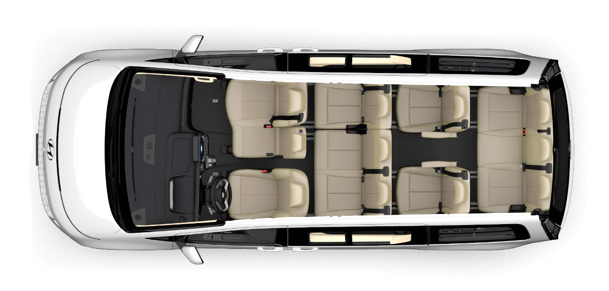 Staria มีการจัดลักษณะที่นั่งให้เลือกทั้งแบบ 7 ที่นั่ง 9 ที่นั่ง และ 11 ที่นั่ง เหมาะสำหรับการเดินทางแบบครอบครัวหรือการรับรองในเชิงธุรกิจ โดยเฉพาะในสถานการณ์ที่ต้องเดินทางพร้อมกันหลายคน