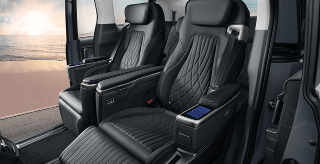 เบาะที่นั่งด้านหน้ามักมาพร้อมกับการปรับไฟฟ้าและฟังก์ชันทำความร้อน ส่วนเบาะที่นั่งแถวที่สองระดับพรีเมียมสามารถปรับได้ด้วยระบบไฟฟ้าในหลายมุม รวมถึงที่รองขาและฟังก์ชันระบายอากาศและทำความร้อน ให้ประสบการณ์นั่งเหมือนชั้นเฟิร์สคลาส แผงคอนโซลติดตั้งหน้าจอสัมผัสขนาดใหญ่