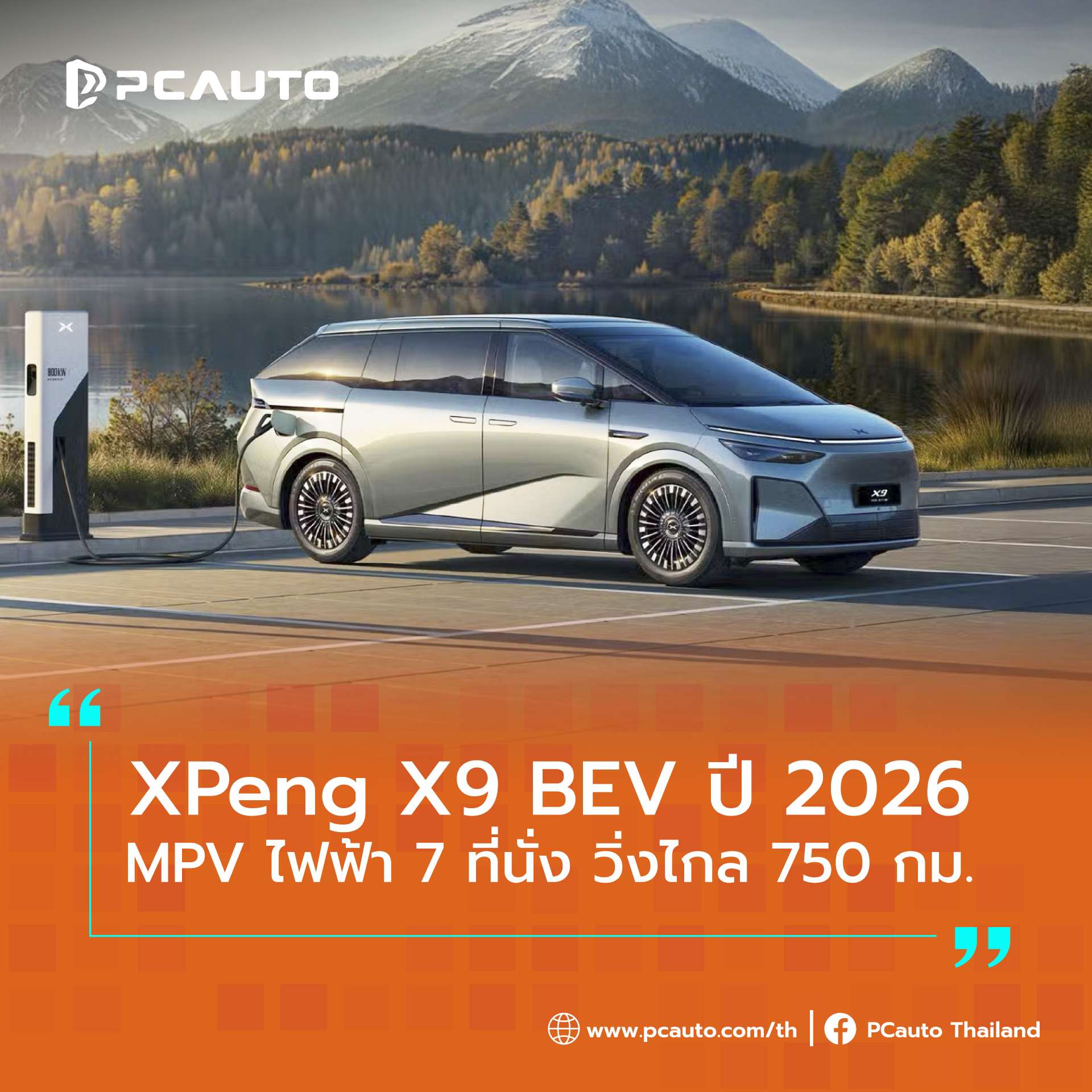 XPeng ระบุว่า X9 BEV รุ่นปี 2026 คือ รถยนต์ไฟฟ้า 7 ที่นั่งที่มีระยะทางวิ่งไกลที่สุดในโลก ด้วยระยะทางสูงสุด 750 กิโลเมตร (มาตรฐาน CLTC) พัฒนาบนแพลตฟอร์มไฟฟ้า 800 โวลต์ รองรับแบตเตอรี่แบบ 5C Supercharging ช่วยลดเวลาชาร์จอย่างมีนัยสำคัญ
