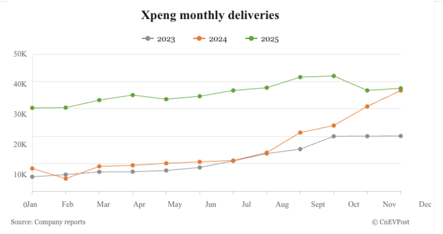 ในภาพรวม XPeng ส่งมอบรถยนต์ในปี 2025 รวม 429,445 คัน เติบโตถึง 125.94% เมื่อเทียบกับปีก่อน และตั้งเป้าใหญ่ในปี 2026 ไว้ที่ 550,000–600,000 คัน พร้อมแผนเปิดตัวรถใหม่อีก 4 รุ่น และเพิ่มโมเดล EREV อย่างน้อย 3 รุ่น ในช่วงไตรมาสแรกของปี